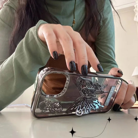 Glitter Butterfly Gradient Stand Case for iPhone Transparent Plating Soft Silicone Cover